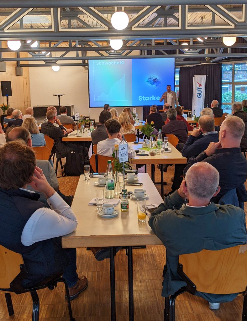 Der Wirtschaftsinformatiker Dr. Eldar Sultanow referiert zum Thema Künstliche Intelligenz (KI) beim 20. Geburtstag des Unternehmer- und Gründernetzwerks GUT Herten im Bürgerhaus Herten.