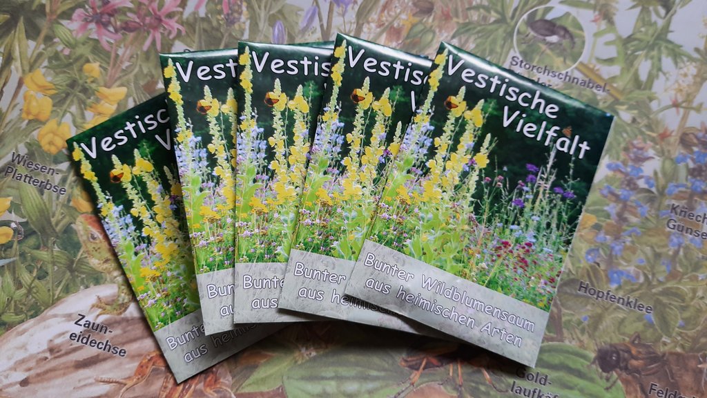 Um die Biodiversität im Kreis Recklinghausen zu fördern, verteilt die Untere Naturschutzbehörde erneut kostenloses Saatgut mit heimischen Wildblumen („Vestische Vielfalt“). Damit sollen neue Blühflächen für Wildbienen und andere Insekten entstehen. Ab sofort können Bürgerinnen und Bürger sowie Vereine kostenlos Saatgut erhalten. Zur Auswahl stehen eine Blumenwiesen-Mischung für größere Flächen und eine Saummischung für kleinere Bereiche wie Zäune oder Garagen.