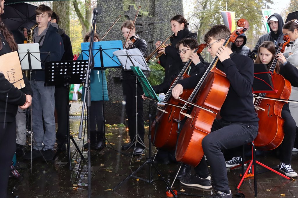 Das Orchester des Städtischen Gymnasiums spielt am Volkstrauertag 2024 von Hugo Distler das Lied „Verleih uns Frieden gnädiglich“. (Foto: Stadt Herten_Marco Baron)