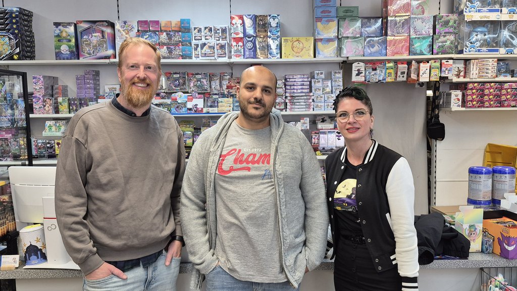 Digitalcoach Stephan Stratmann (l.) nahm sich am „Digitaltag“ Zeit für lokale Händlerinnen und Händler. Er gab unter anderem Mohamad Ali Ayad (M.) Tipps zur Online-Sichtbarkeit für sein Geschäft „Bunte Kiste“. Jessica Zubala (r.) vom Projektbüro „Neustart Innenstadt“ freute sich, mit diesem Angebot Hertener Unternehmen fit für die Zukunft zu machen. (Foto: Mussa Ayad)