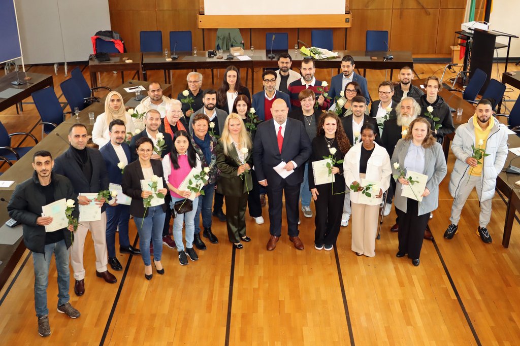 In der feierlichen Zeremonie bekannten sich die Einbürgerungsbewerberinnen und -bewerber aus Afghanistan, Ägypten, Belarus, Bosnien-Herzegowina, Bulgarien, Eritrea, Griechenland, dem Irak und Iran, Pakistan, Polen, Rumänien, Serbien, Syrien, Turkmenistan, der Türkei und Vietnam zur freiheitlich demokratischen Grundordnung. Bevor die Bewerberinnen und Bewerber endlich ihre Urkunden in den Händen halten konnten, durchliefen sie ein umfangreiches Verfahren.