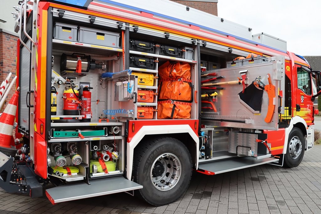 Bürgermeister Matthias Müller zeigte sich beeindruckt von der Ausstattung des Löschfahrzeugs. „Es ist enorm wichtig, dass unsere Feuerwehr bestmöglich ausgestattet ist, damit sie im Notfall den Hertener Bürgerinnen und Bürgern schnell und wirksam helfen kann“, betonte er. Laut Thorsten Geldermann, Leiter der Abteilung Technik der Berufsfeuerwehr Herten, hat dieses Fahrzeug alles dabei, was für den Ersteinsatz benötigt wird: „Das Hilfeleistungslöschfahrzeug fährt zu jedem Einsatz – von der berühmten Katze im Baum, über Ölspuren auf Straßen bis hin zum Brandeinsatz. Daher müssen wir hier vom kleinen Werkzeugschlüssel bis zum hydraulischen Spreizer alles an Bord haben.“