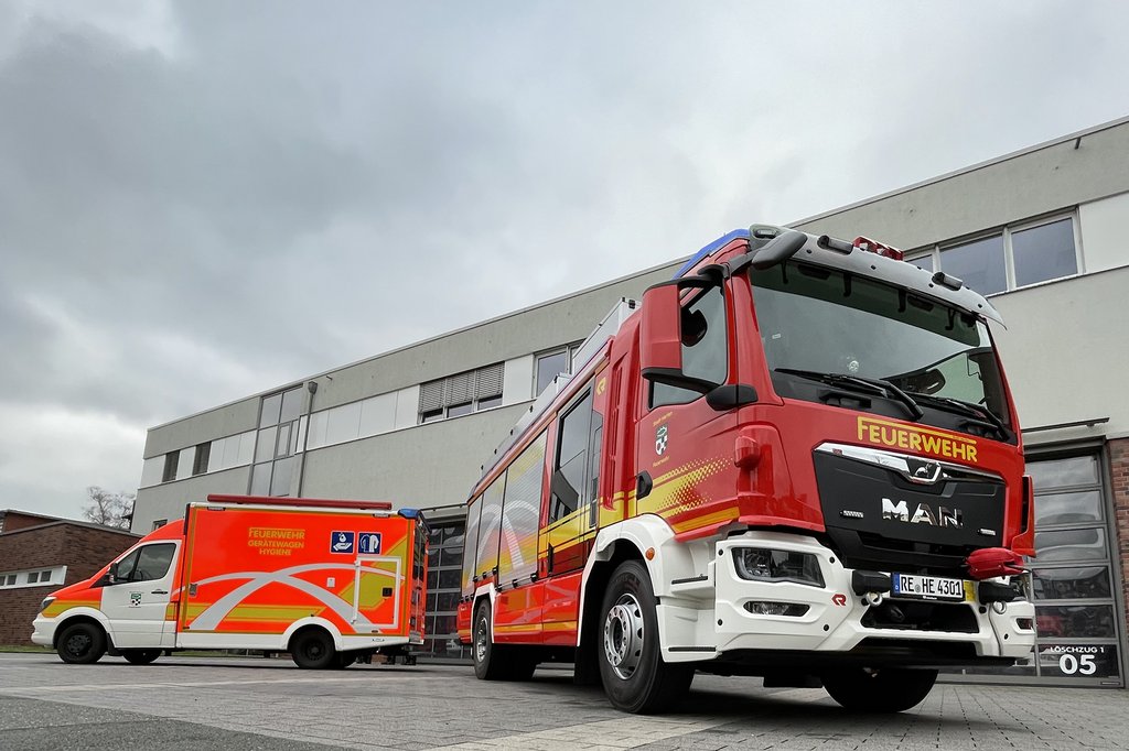 Die Modernisierung der Einsatzfahrzeuge der Berufsfeuerwehr Herten schreitet voran. Nachdem im vergangenen Jahr bereits ein neuer Einsatzleitwagen angeschafft wurde, steht den Mitarbeiterinnen und Mitarbeitern ab sofort ein hochmodernes Hilfeleistungslöschfahrzeug (HLF) sowie ein Gerätewagen Hygiene für ihre Einsätze zur Verfügung.