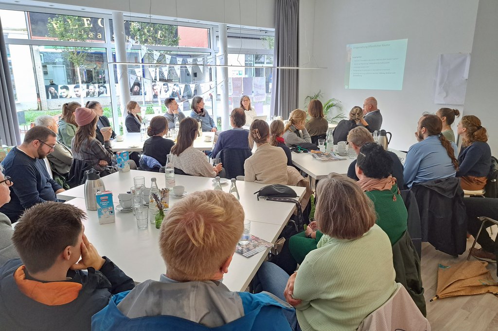 Das diesjährige Motto des Expertenforums lautete daher auch „Handeln im Wandel: Ein einzelnes Blatt spendet keinen Schatten“. Im Zuge der zweitägigen Veranstaltung besuchten die Teilnehmenden verschiedene Beispiele bereits vorbildlich umgesetzter Klimaanpassungsmaßnahmen in der Region und waren auch zu Gast in der Hertener Innenstadt.
