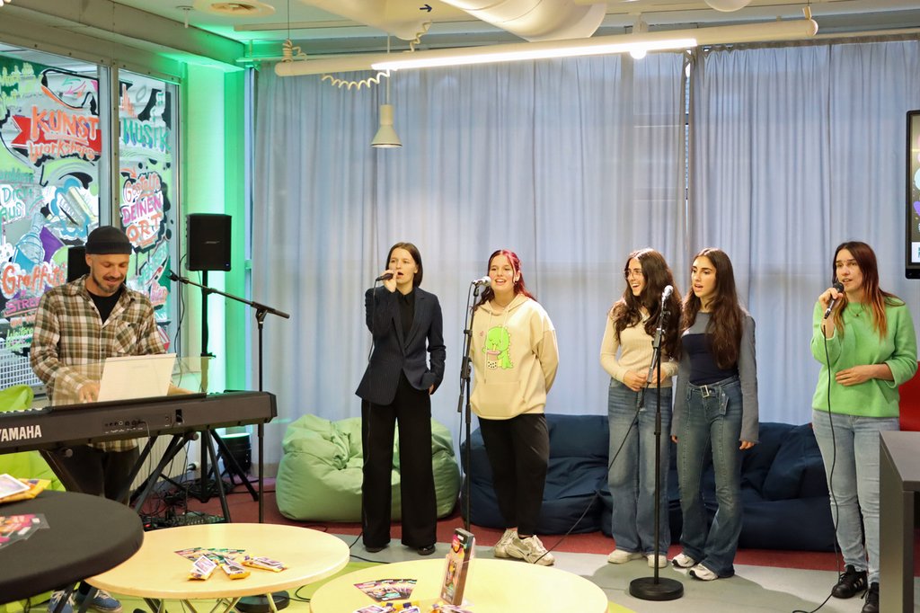 Für den musikalischen Rahmen sorgte die Hertener Musikschule mit Gesangslehrer Marcel Sander mit seinen Schülerinnen Luisa Herold, Michelle Gaber, Caitlin Gaber, Talia und Teya Rahbe.