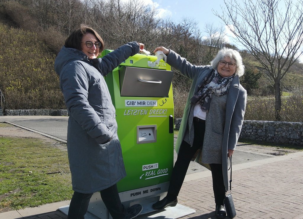Auf dem Gelände des ehemaligen Bergwerks Ewald stehen fünf neue öffentliche Abfallbehälter mit integrierter Pressvorrichtung. Sie sind Teil des Projektes Stadtsauberkeit, welches der Rat der Stadt Herten beschlossen hat. Durch die neuen Mülleimer steht ein vergrößertes Volumen von gut 240 Litern zur Verfügung. Die Energie um den Müll zu pressen, beziehen die Behälter, ganz im Sinne der Nachhaltigkeit, durch integrierte Solarmodule.