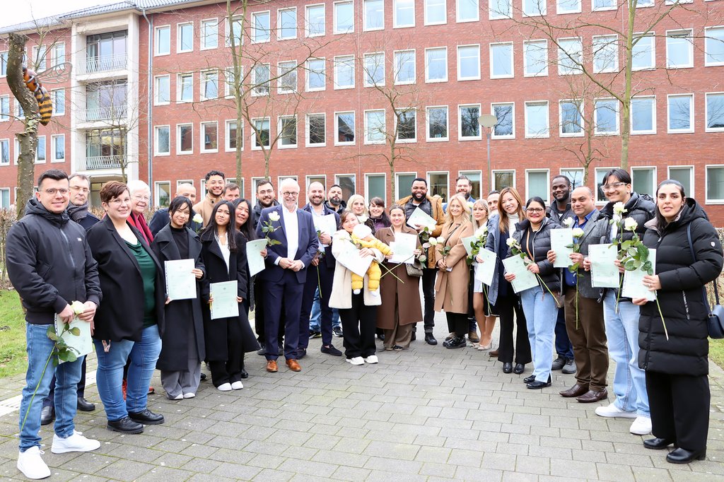 36 Hertener Bürgerinnen und Bürger haben im Februar 2025 offiziell die deutsche Staatsangehörigkeit erhalten. Im Rahmen einer Einbürgerungsveranstaltung im Rathaus überreichte ihnen Bürgermeister Matthias Müller die Einbürgerungsurkunden.