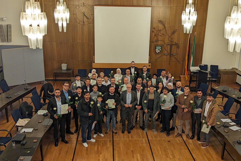 64 Hertener Bürgerinnen und Bürger haben im Dezember 2023 offiziell die deutsche Staatsangehörigkeit erhalten. Im Rahmen einer Einbürgerungsveranstaltung im Rathaus überreichte ihnen Bürgermeister Matthias Müller die Einbürgerungsurkunden. In der feierlichen Zeremonie bekannten sich die Einbürgerungsbewerberinnen und -bewerber aus Syrien, Afghanistan, Ägypten, dem Iran und der Türkei zur freiheitlich demokratischen Grundordnung.