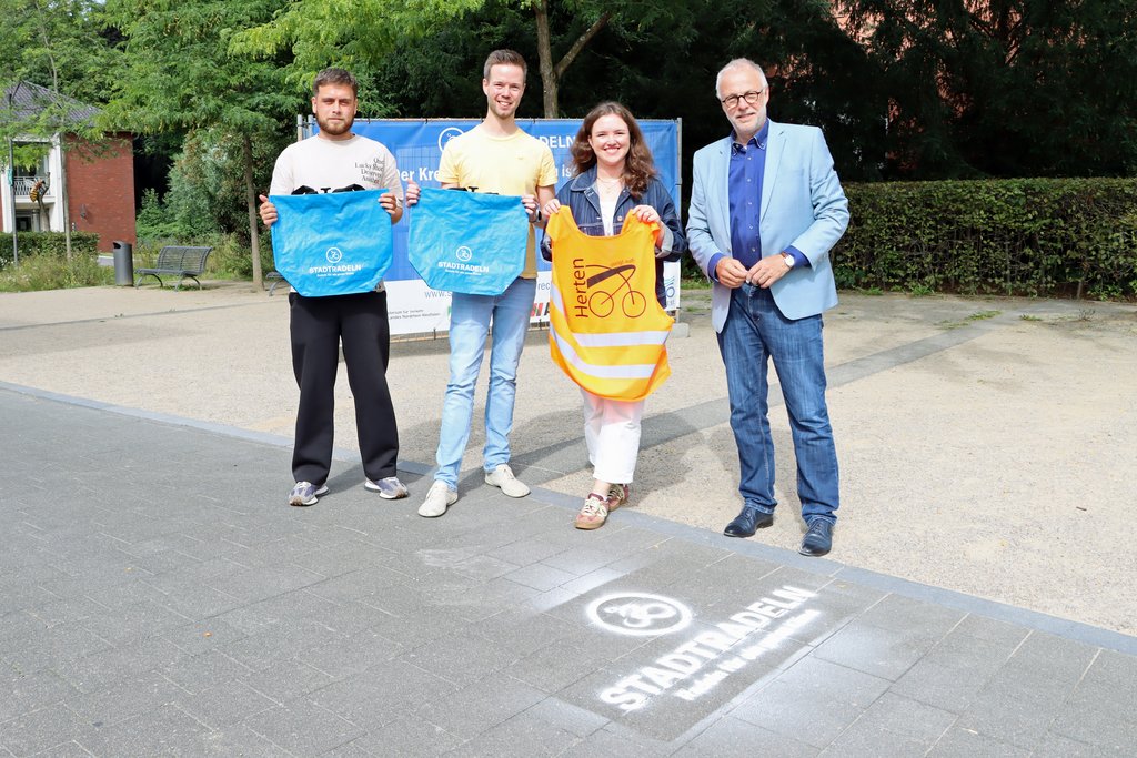 Beim Stadtradeln können alle mitmachen, die in der Stadt Herten wohnen, arbeiten, einem Verein angehören oder eine Schule besuchen. Um auf den beliebten Wettbewerb aufmerksam zu machen, wurde das Stadtradeln-Logo auf zahlreiche Radwege im Stadtgebiet mit Sprühkreide gesprüht. Den Anfang machte Bürgermeister Matthias Müller. Er verzierte den Radweg vor dem Rathaus. Dabei erklärte Müller: „Mit der Aktion ,Stadtradeln‘ setzen wir gemeinsam mit dem Kreis Recklinghausen ein starkes Zeichen für nachhaltige Mobilität und Klimaschutz in unserer Kommune und im Kreis. Ich lade Sie herzlich ein, aktiv mitzumachen, in die Pedale zu treten und möglichst viele Kilometer mit dem Fahrrad zurückzulegen.“