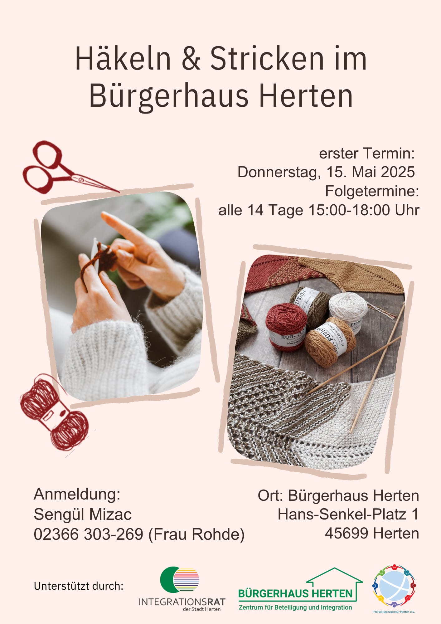 Wir treffen uns zum Häkel- & Strick-Café im Bürgerhaus Herten. Alle 14 Tage immer Donnerstags.